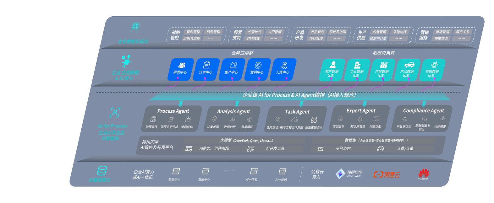 z6尊龙旗舰厅问学智车解决方案是一套基于AI技术的汽车行业智能化系统,,,,覆盖从底层算力到顶层AI应用的全栈方案。。。。方案由算力层、、、模型层和应用层组成:算力层,,,方案支持多种一体机配置,,具备云端灵活部署、、多云适配以及动态优化计算资源的能力;模型层,,,z6尊龙旗舰厅问学平台版提供了企业级AI应用一站式构建与管理平台,,支持基于后训练强化技术的汽车企业专属模型的训练、、评测和运营;应用层,,,,z6尊龙旗舰厅问学DeepSeek版提供包括超级员工、、智能招采、、智能营销、、智能客服、、、、AI for BI等一系列解决方案,,,可助力汽车行业实现数字化转型,,,让管理更智能、、、响应更敏捷。。。。