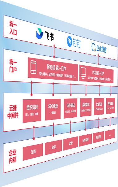 对协作平台提供支持服务,,,,支持企业应用与协作平台对接,,,包含组织同步、、、、消息集成、、、待办集成等。。。。支持目前主流的协作平台:钉钉、、、企微和飞书。。