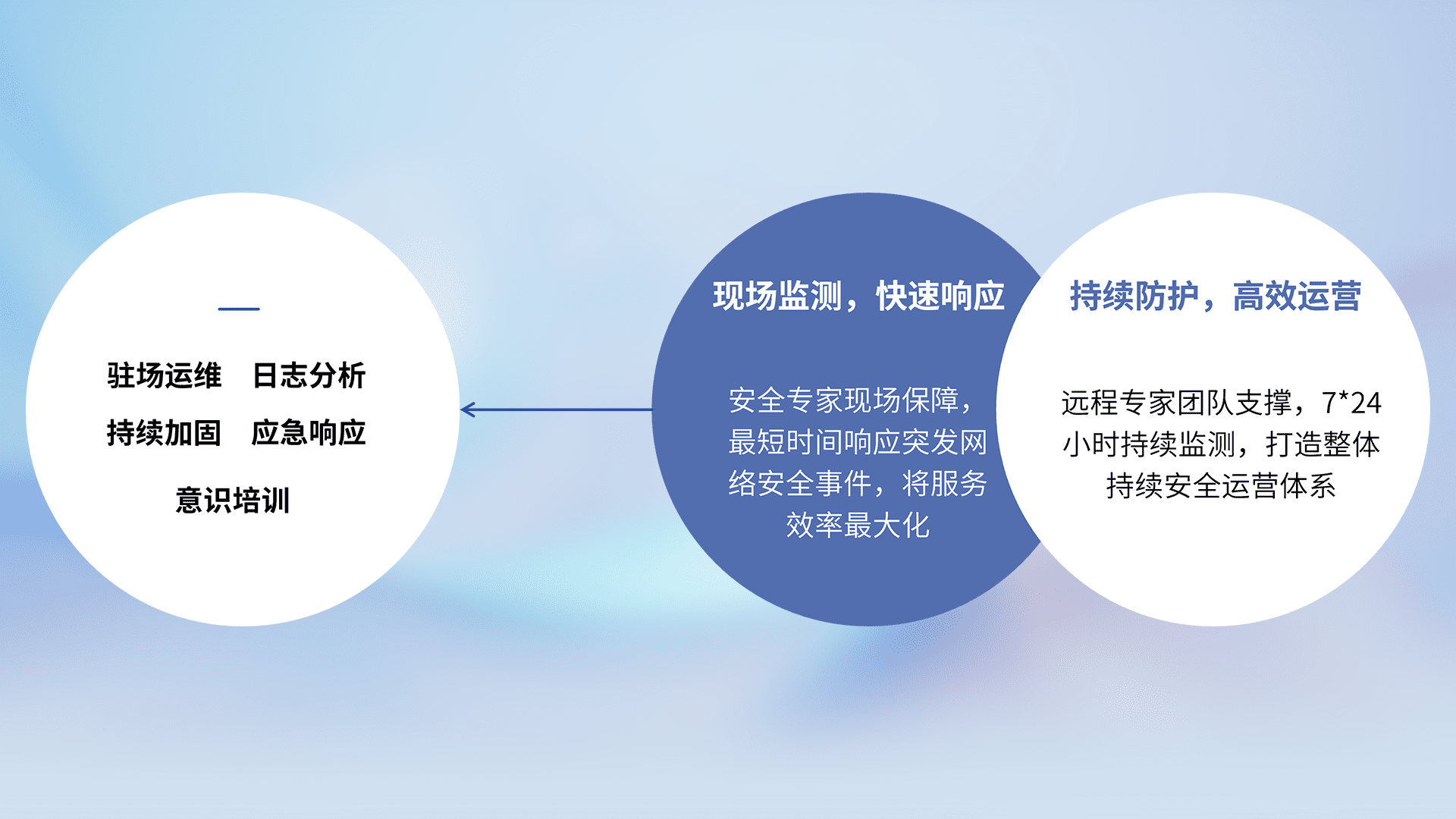 针对客户行业特性,,,,提供专属的一站式安全管理服务,,,,帮助客户全面感知网络空间威胁,,通过安全专家的线上、、、、线下防护支持,,实现风险闭环,,将安全保障常态化,,,,为客户打造常态化安全运维运营服务。。。